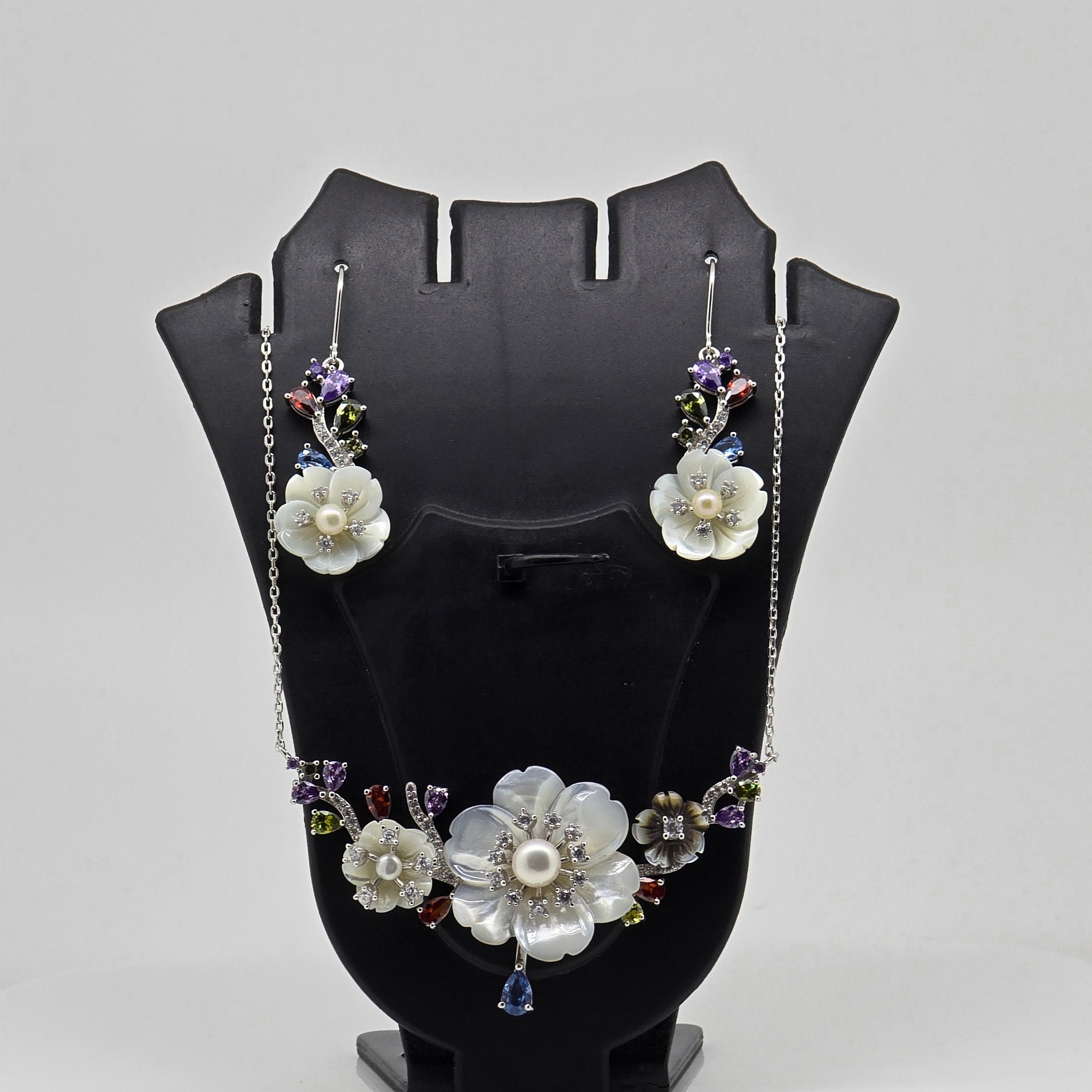 Silver MOP Flower Pendant Set 92.5